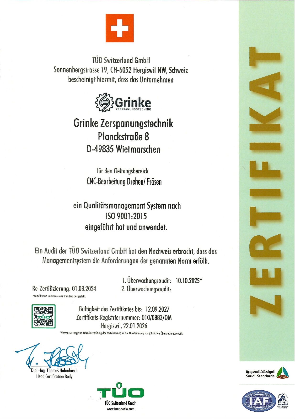 Im September 2010 schließt Firmenchef Andreas Grinke seine Meisterprüfung zum Industriemeister erfolgreich ab.